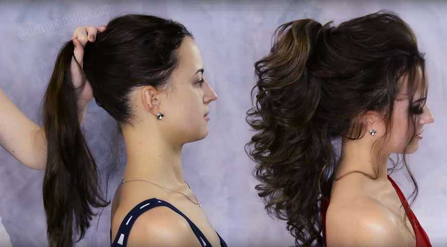 Не все женщины обладают пышными волосами, но это легко поправимо. Если не хватает объёма, можно начесать немного локоны или сделать завивку. Собрать волосы в два хвоста, один на затылке, другой чуть повыше, который нужно слегка расслабить.