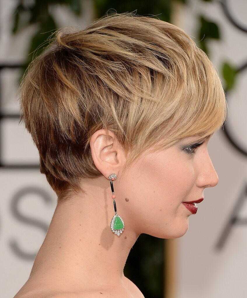 Стрижка Пикси еще один вариант модной голливудской причёски, которую предпочитают создавать многие знаменитости. Короткая, динамичная и объемная стрижка волос, которая смотрится просто потрясающе в паре дополнительным начесом у корней волос. Стрижка с максимальной градуировкой, что в свою очередь позволяет придавать волосам дополнительный объем. Что касается челки, то здесь стилисты рекомендуют выбирать аккуратные боковые модели.