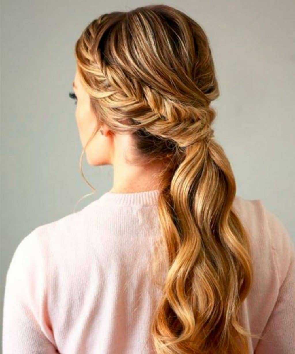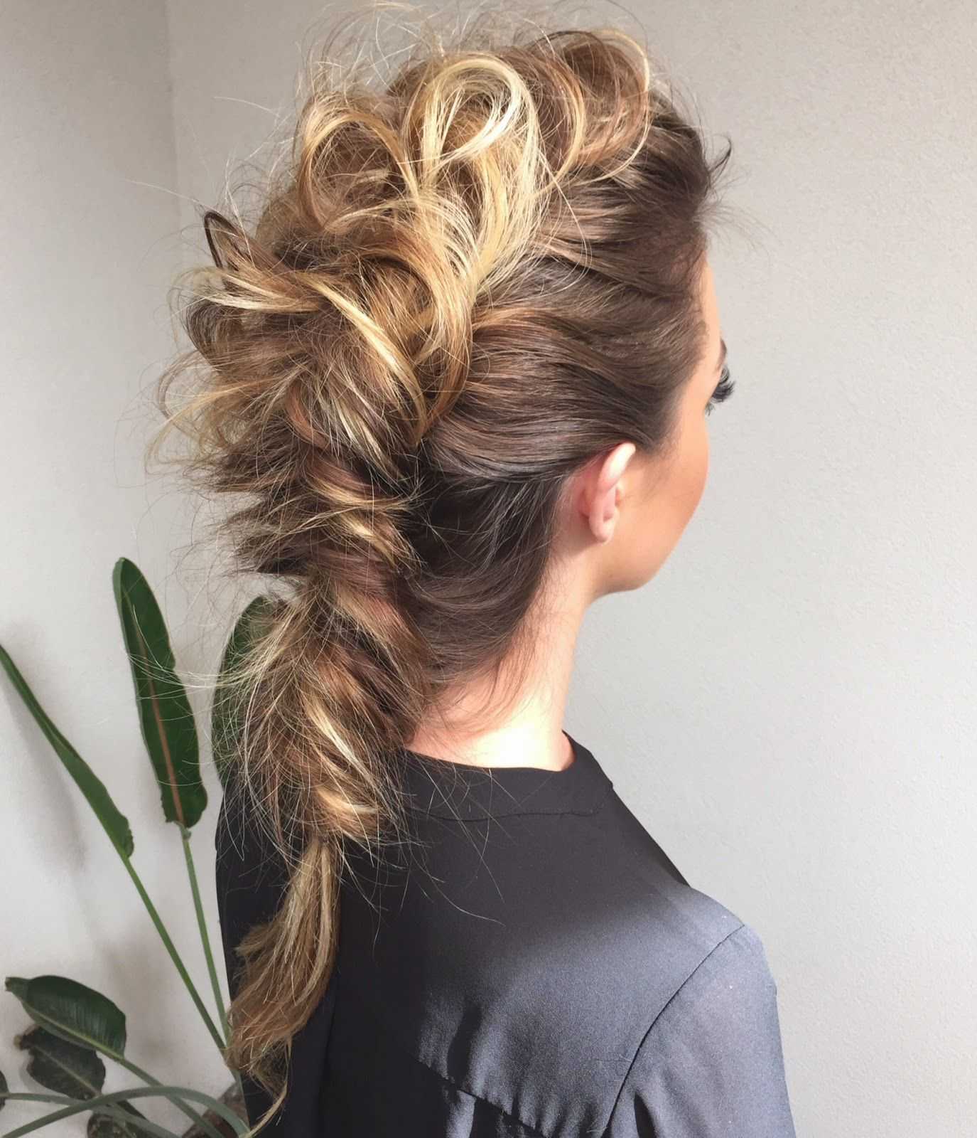 Эффектно выглядит быстрая легкая прическа, выполненная в технике «Рыбий хвост». Волосы для такой укладки должны быть длинными. Исполняется легкая прическа быстро – около 3-4 минут.
