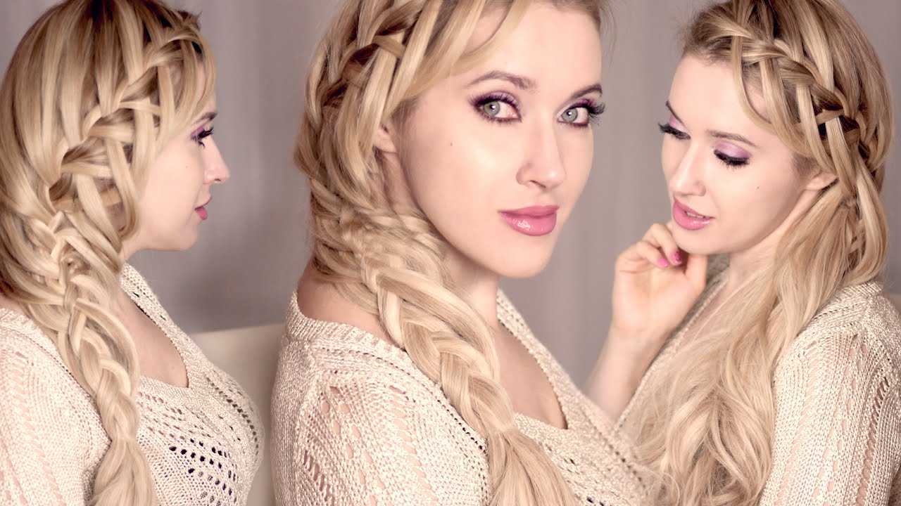Такая прическа подойдет для любого типа лица. Итак, делим волосы по пробору, заплетаем косы по бокам.