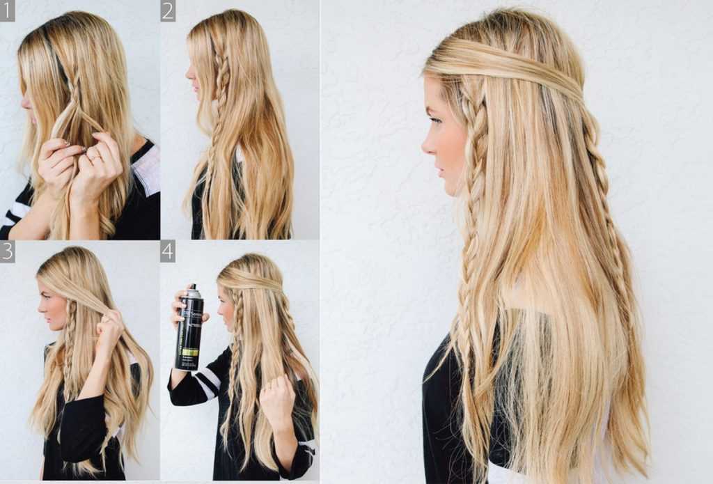 Если волосы длинные и непослушные, поможет коса, свободно заплетенная от затылка на бок, или прямая объемная. Здесь верхняя часть может быть слегка растрепанной и пушистой. Девушки сочетают распущенные волосы с несколькими тугими плетениями в верхней части головы. Красиво смотрятся 2 косы, заплетенные от ушей.