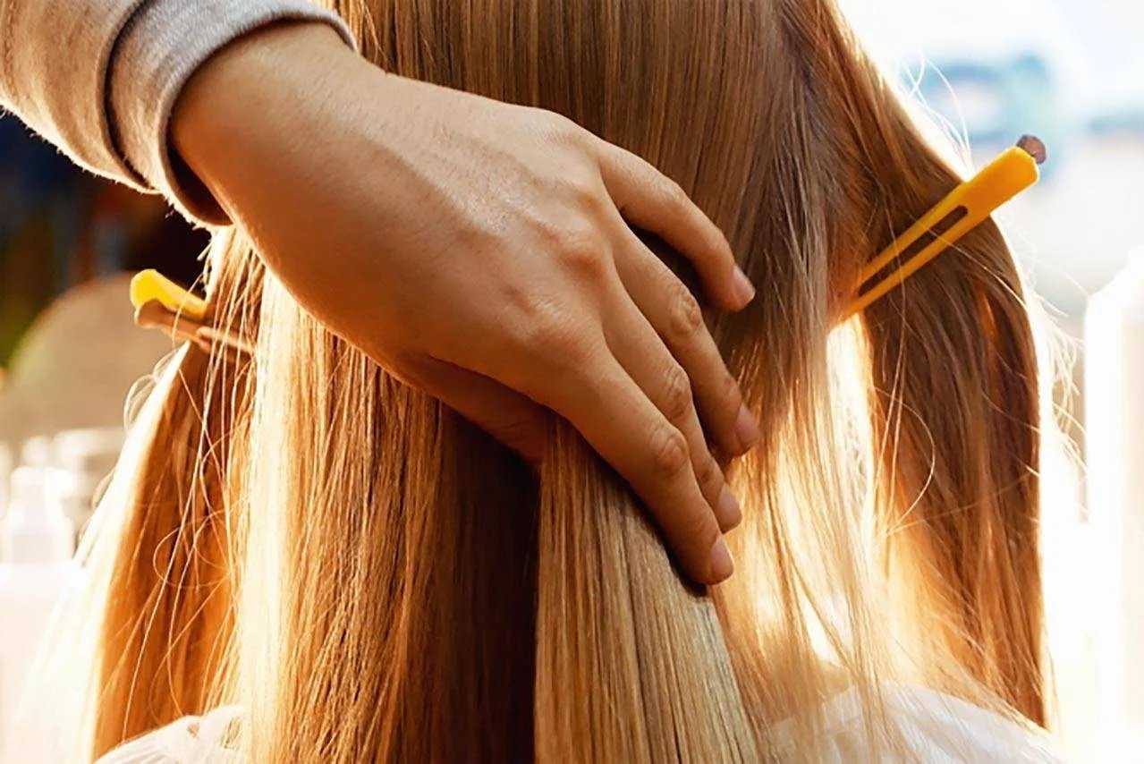 - Разделим волосы узким кончиком гребня. Все волосы, которые ближе к лицу и шее, оставим свисать.