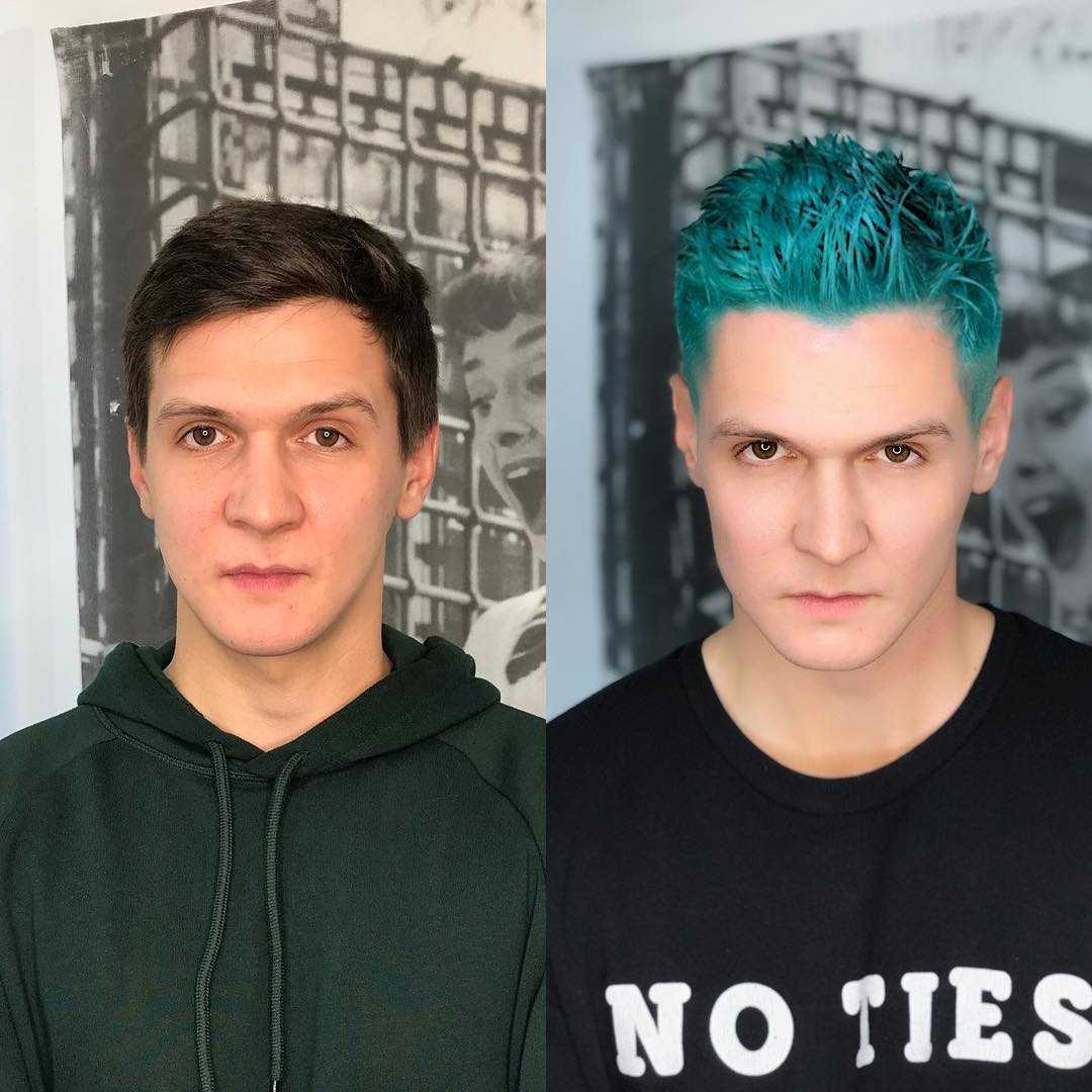Вариант для самых смелых натур. Яркий зеленый, синий, красный или даже розовый будет хорошо смотреться со стрижками на короткие волосы, например с креативным ежиком.