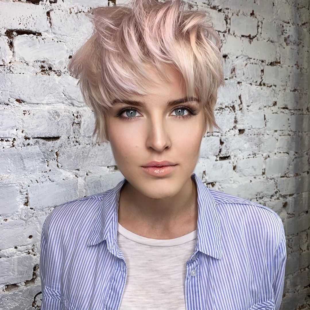 - Пикси хорошо сочетается с волосами всех тонов. Особенно эффектно на ней смотрятся яркие цвета, мелирование и колорирование;