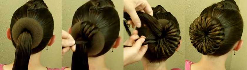 На пучок на длинные волосы с валиком потребуется приспособление в форме кольца.