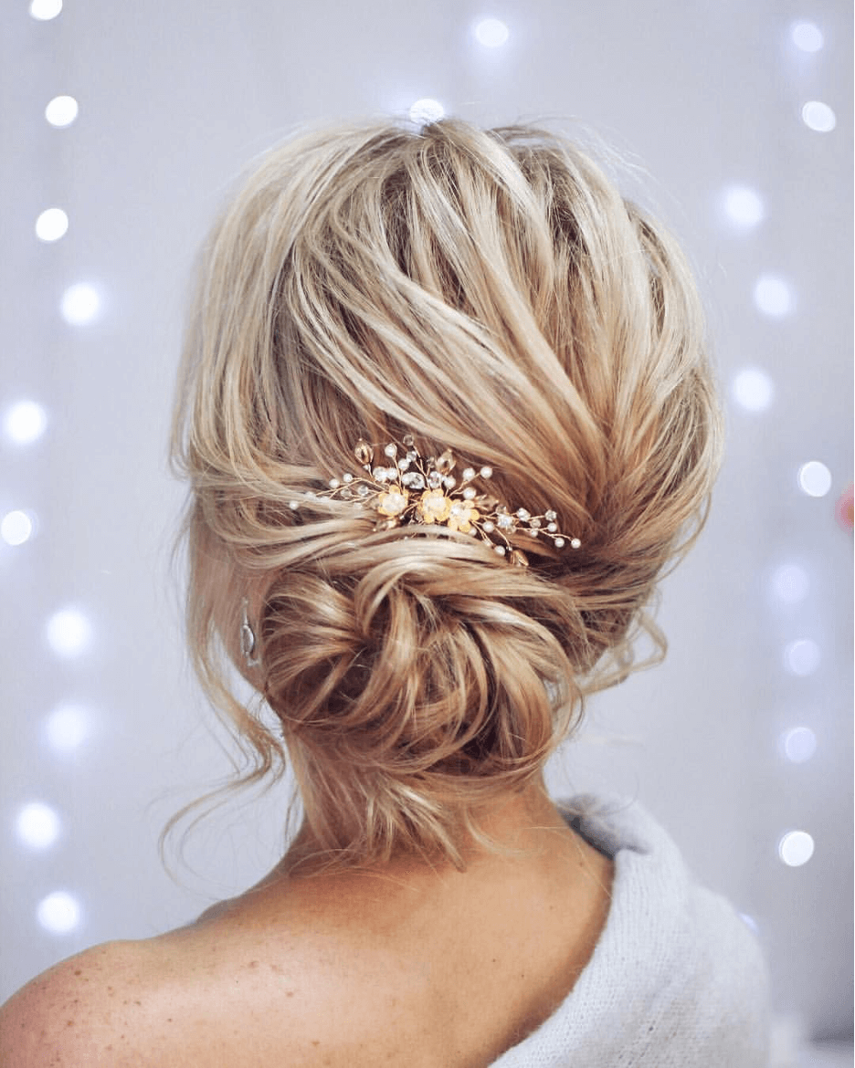Дополнить простую прическу можно аксессуарами, которые сделают образ более праздничным и нарядным.