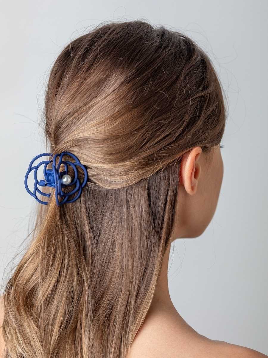 Для создания прически отделите небольшую прядь у лобной части и закрепите ее сбоку аксессуаром. Это позволит выделить модное украшение и разнообразить повседневные образы. Волосы будут распущенными, однако не будут мешать в работе.