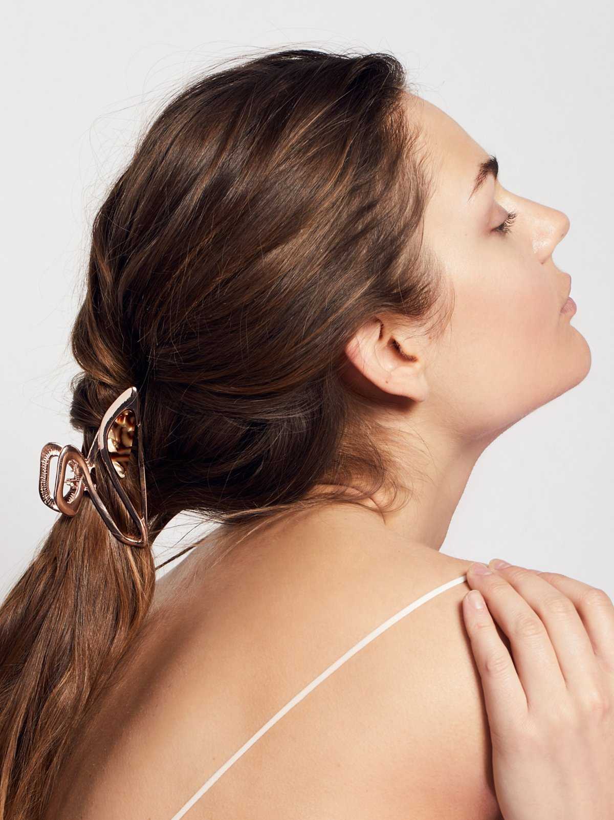 Если вы работаете в офисе или подбираете для себя повседневную прическу, остановитесь на низком хвосте. Для укладки потребуется несколько тонких крабов из металла. Они могут иметь геометрическую или необычную форму.