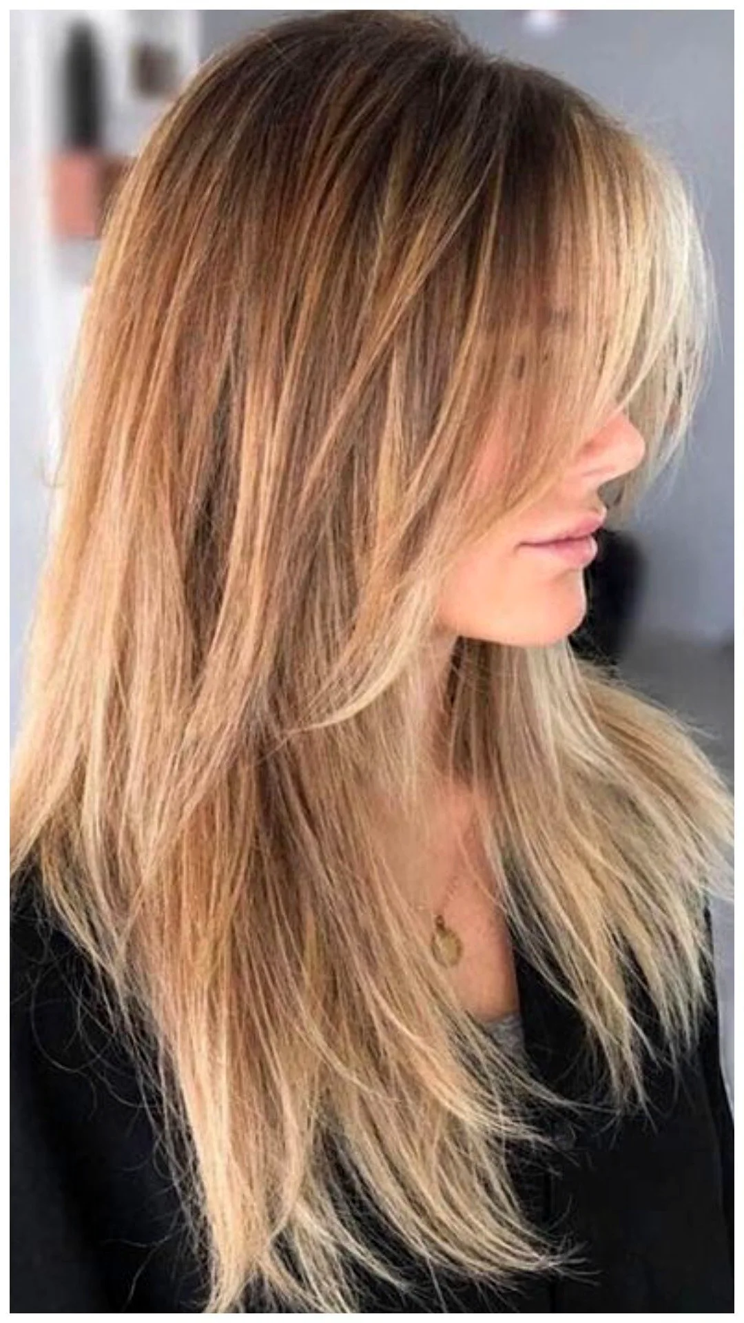 Длинная рваная челка достаточно универсальна, гармонично сочетается с прическами разной длины и волосами разной текстуры. Ключевой деталью рваной длинной челки является сильно выраженная градуировка прядей.