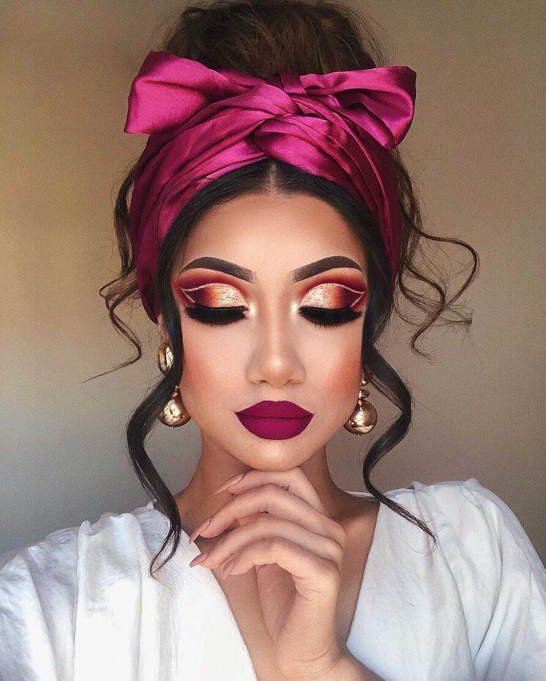 Завитые локоны с чёлкой на волосах средней длины смотрятся очень пикантно и оригинально. Такой вариант станет идеальным решение для тематической вечеринки или фото сессии. Для создания этой причёски нужно отделить чёлку и собрать все волосы в высокий хвост на затылке. Накручиваем пряди хвоста, формируя длинные спирали, и сбрызгиваем лаком. Красиво подвязываем получившуюся копну красивым платком, расположив кончики в виде банта на боку или макушке. Чёлку накручиваем вовнутрь при помощи насадки на щипцы большого диаметра и фиксируем лаком. Но настоящим хитом является укладка волос с гладкими корнями и завитыми кончиками.