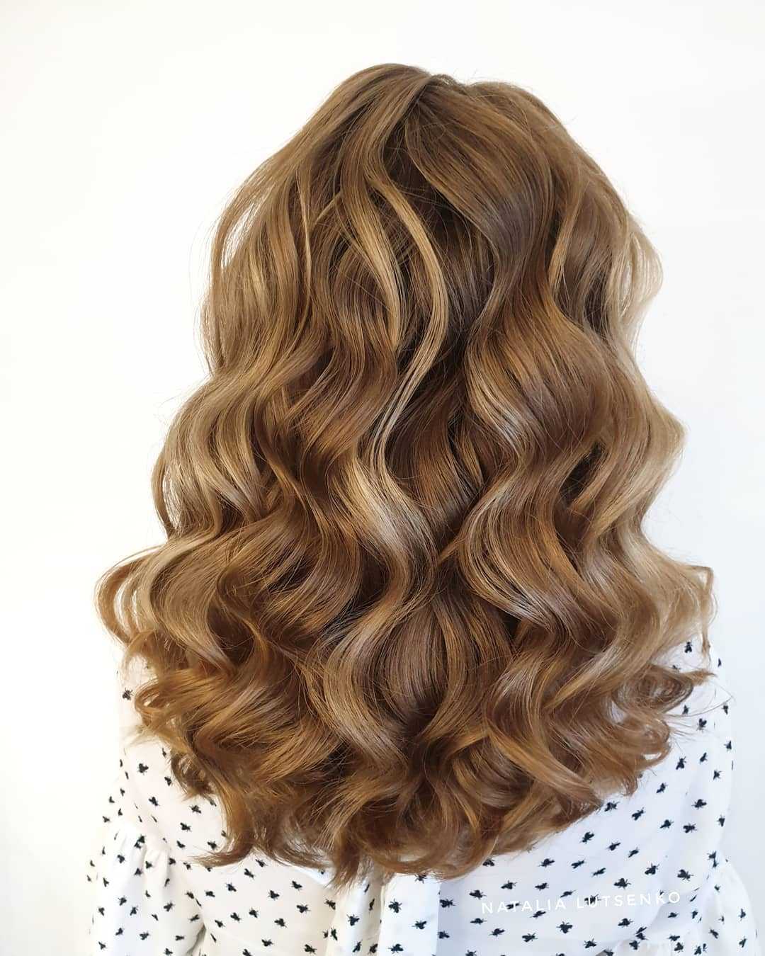 - Крупные волны или локоны станут отличным дополнением в создании вечернего образа. Их можно создавать при помощи бигуди или специальных щипцов для завивки.