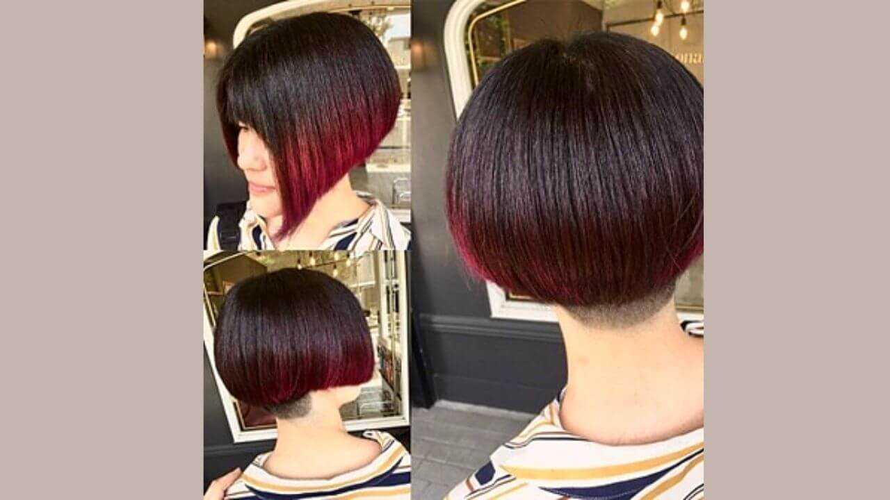 Боб на ножке. При оформлении прически волосы на затылке состригаются до максимально короткой длины, а на теменной области создается объем.