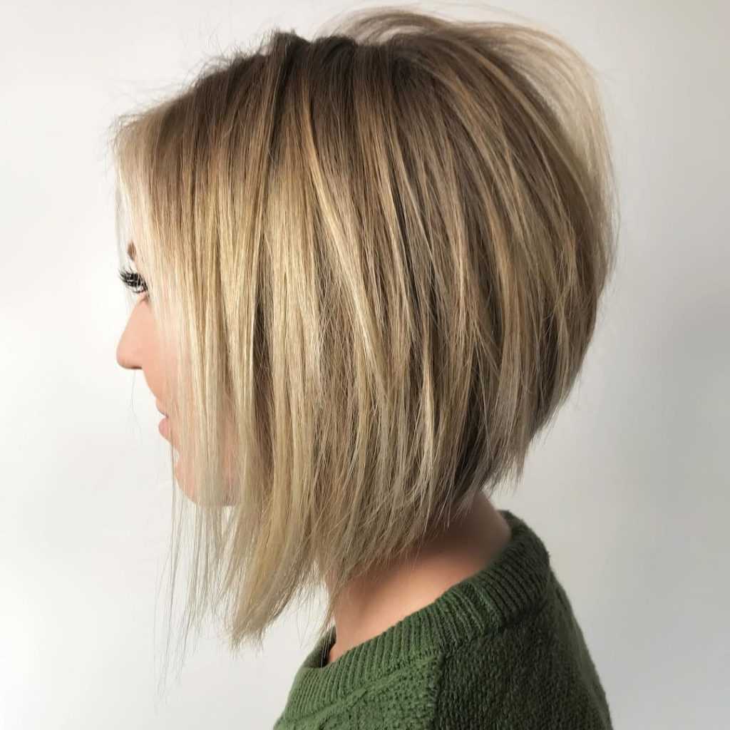 С такой прической можно замаскировать округлые очертания лица, при этом оно приобретает вытянутую форму. Суть стрижки в том, что волосы, расположенные спереди, должны быть длиннее, чем задние. А вот скрасить округлости лица позволит ниспадающая на один бок челка.