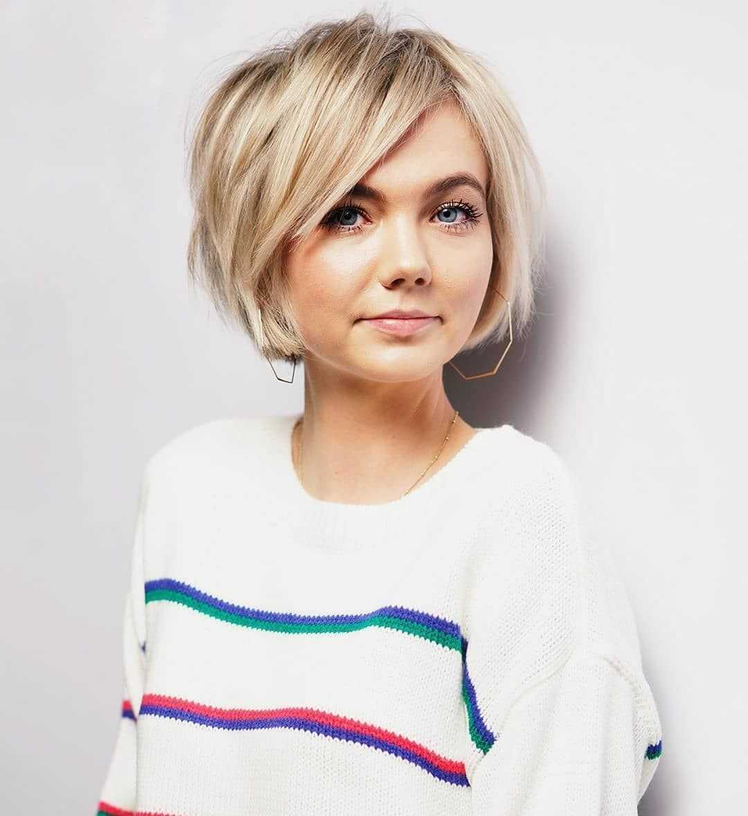 Подходит такой вариант и для круглого лица, если добавить длинную чёлку, которая будет закрывать часть лица. Так форма визуально вытянется, станет похожей на классический овал.