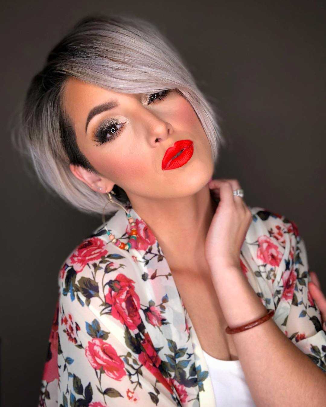 Короткие волосы, постриженные в стиле пикси, выглядят мило и трогательно. Пряди на затылочной и височных частях короче, чем на макушке. Это стиль удобен, потому что он легко поддаётся укладке и не требует усиленного ухода.