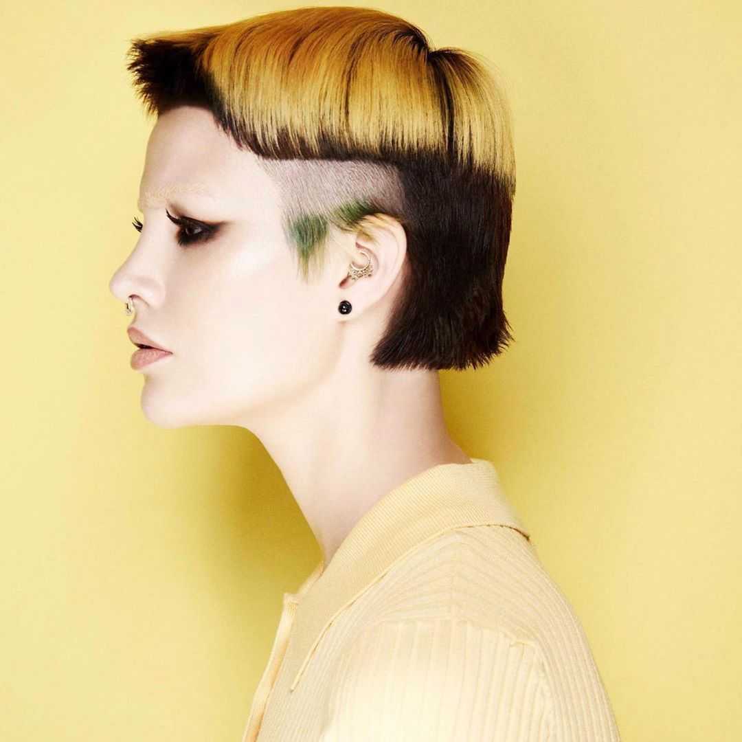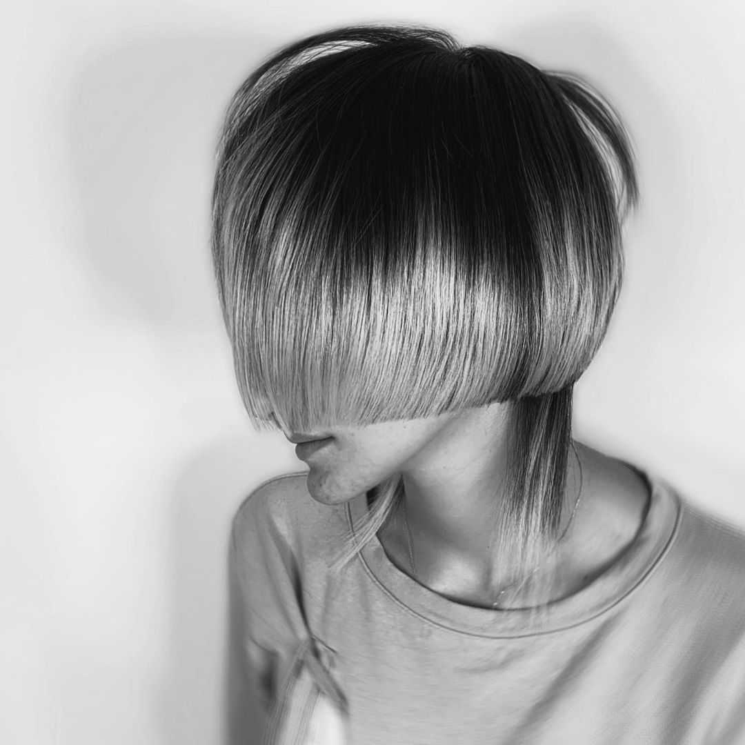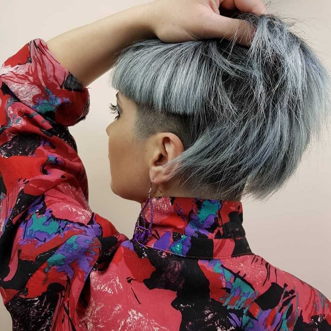 Эта стрижка также выглядит весьма экстравагантно и подойдет скорее для молодежи, чем для взрослых женщин. Отличается она укороченными, либо выбритыми висками и затылочной частью головы.