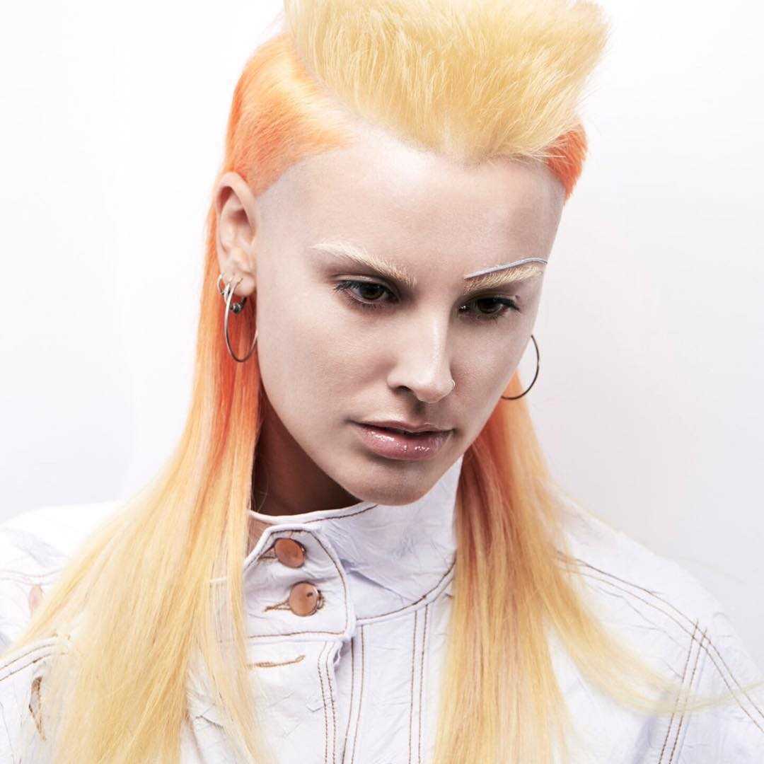 Как правило, оставшиеся волосы красили в яркие неестественные цвета, а образ дополняли необычной одеждой и макияжем