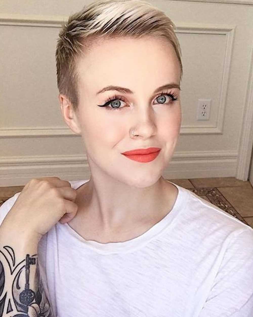 Важно помнить, что стрижка пикси будет акцентировать внимание окружающих на лице, поэтому нужно всегда делать макияж и следить за состоянием кожи. Также подобная прическа требует тщательного ухода, недопустим даже малейший жирный блеск на волосах. Поэтому следует постоянно следить за их свежестью