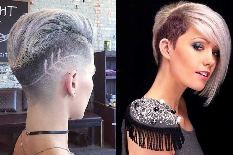 В тренде уже не один сезон экстравагантная пикси с выбритыми висками. Она делается с использованием триммера или бритвы. Виски и затылок сильно выбриваются, а макушка остается более длинной. Существуют разнообразные варианты создания таких причесок. Например, можно выбрить только один висок, а остальную зону выстричь по классической схеме. Еще одна вариация – оба выбритых виска или выбритые узоры. В этих случаях зона ультракороткого выстригания и место для создания узоров зависят от пожеланий клиента и фантазии стилиста.