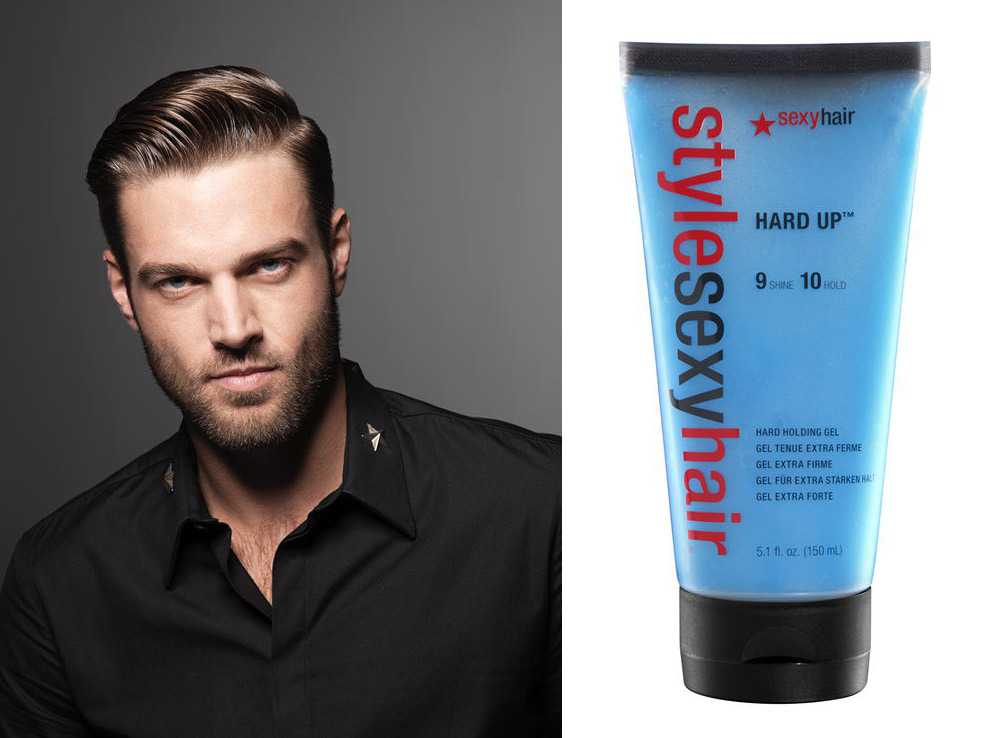 - Для мягкой и гладкой укладки – используется гель, который аккуратно наносится на волосы, стрижка укладывается расческой с мелкими зубцами. Вечерний мужской образ требует создания пробора.