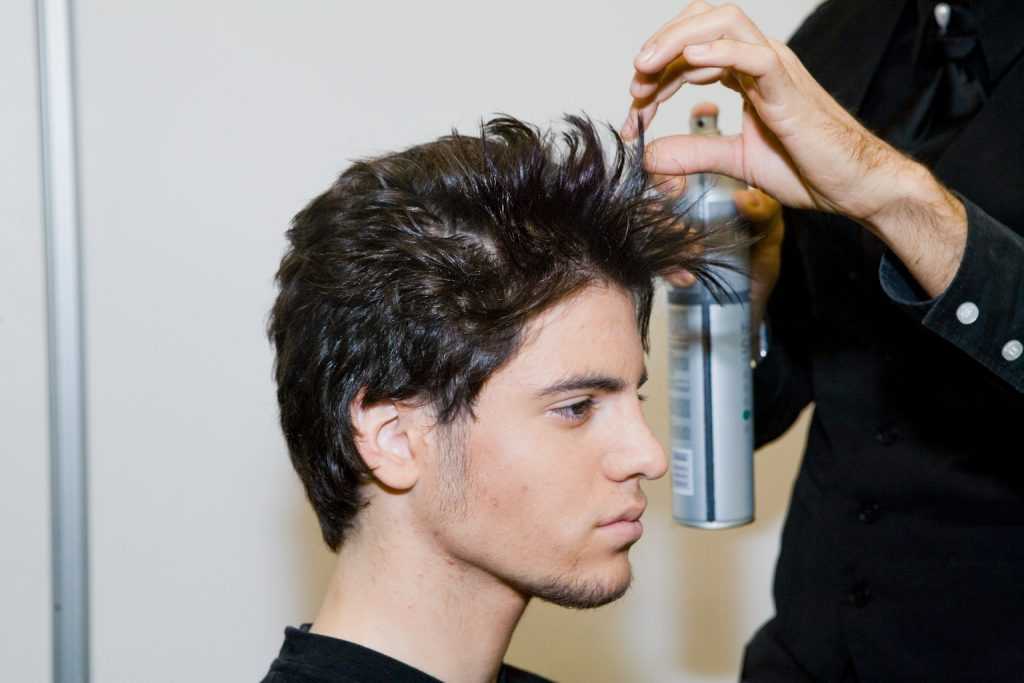 - Для стоящих вверх прядей – техника считается популярной при классической стрижке. Выполняется зачесом вверх с приподнятыми корнями волос. Мужская прическа требует применения стайлингового средства.