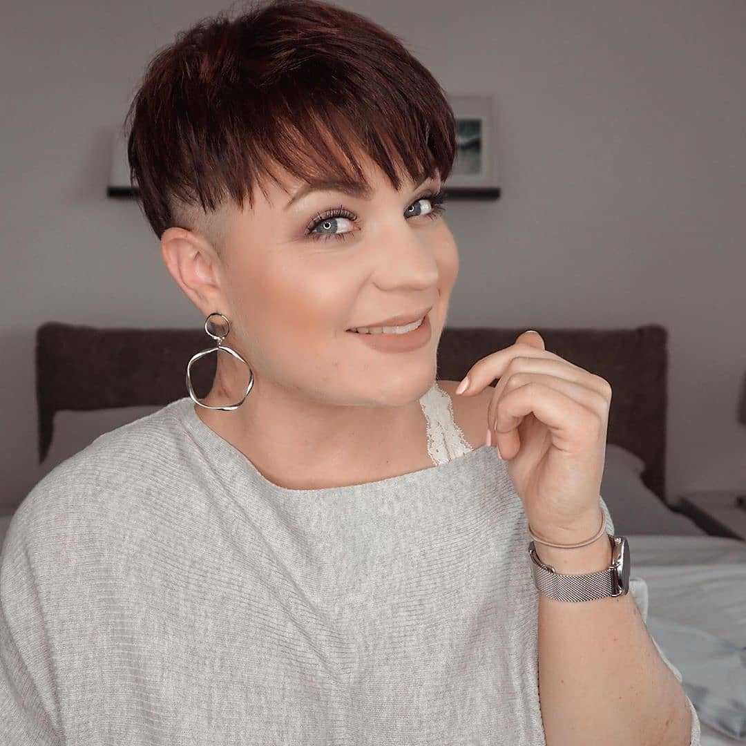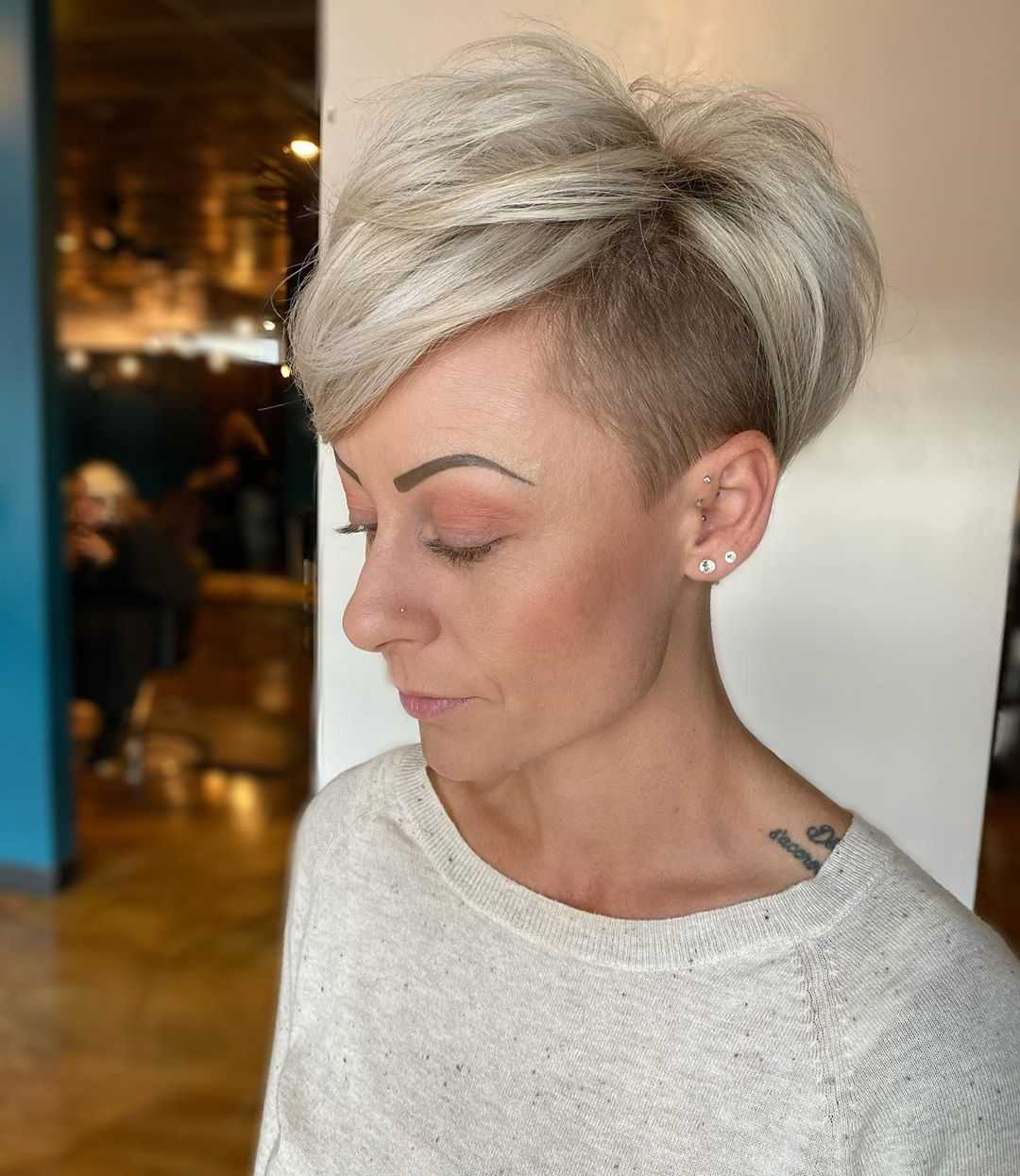 Выбритый висок или затылок подходит для смелых и экстравагантных женщин. Сочетается практически с любой стрижкой. Например, с бобом будет выглядеть эпатажно и неординарно. Для привлечения большего внимания можно выполнить на выбритом участке рисунок машинкой для стрижки. Такой элемент подходит молодым и смелым девушкам.