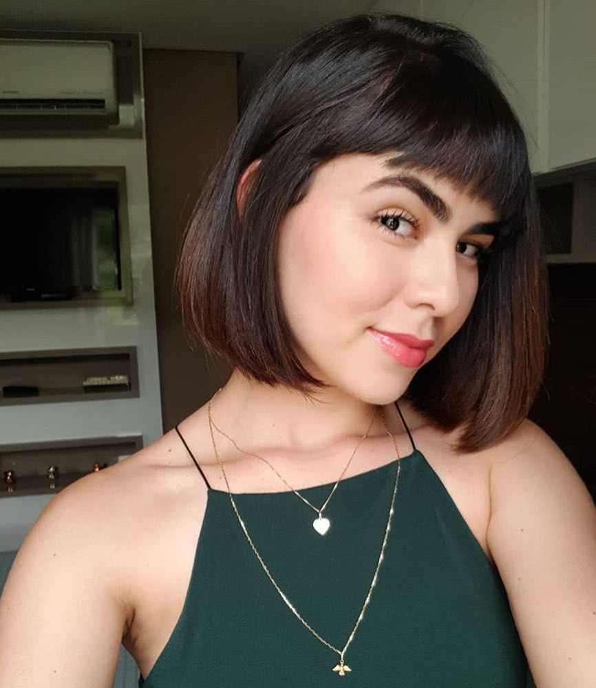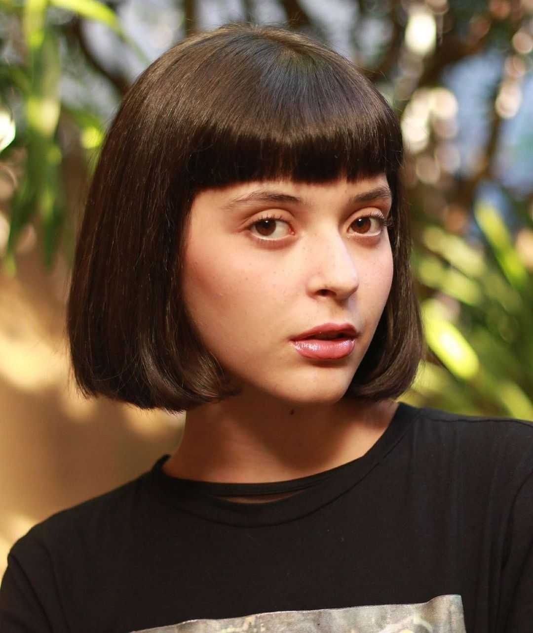 С Авророй хорошо смотрится как короткая, так и удлиненная косая челка — все зависит от конфигурации самой стрижки и черт лица. Если пропорции лица нужно визуально удлинить, стилист, скорее всего, предложит удлиненный вариант косой челки, а если вашему лицу нужно добавить открытости и динамики — короткий.