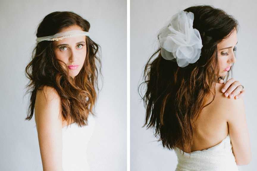Однако такая прическа будет удобна только при отсутствии ветра или для церемонии в помещении. В других ситуациях будет несколько удобнее, если пряди будут зачесаны назад или “прижаты” косой, жгутами или лентой.