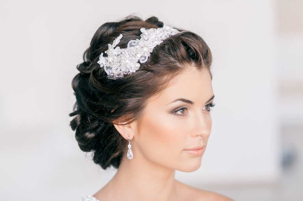 На пике популярности находятся и диадемы. Особенно если вам интересны свадебные прически на бок на короткие волосы. Достаточно уложить волосы, сделав начес на макушке, а лоб оставить открытым. Причем этот вариант подойдет тем, чьи волосы не достают даже до подбородка.