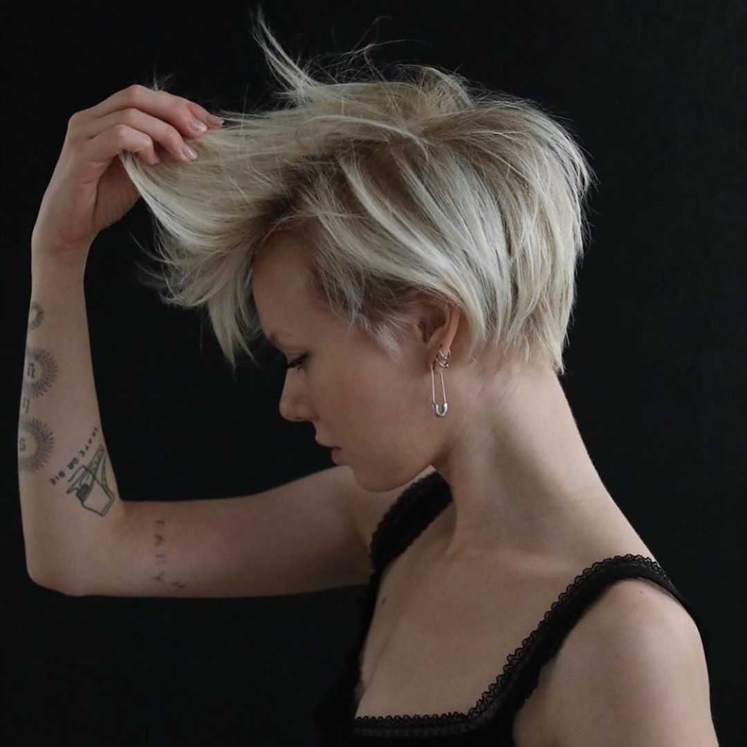 В основе любой хипсерской стрижки на короткие волосы лежит беззаботность и индивидуальность. Именно поэтому стрижка пикси в данном варианте не нуждается в тщательной укладке. Должно оставаться ощущение, что вы только что встали с кровати.