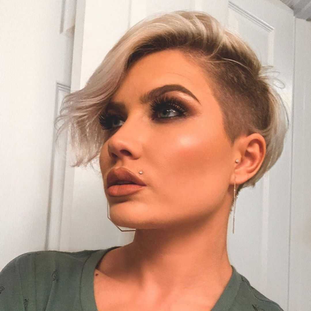 Выбритые виски – затылок стрижется очень коротким, выбривается либо два виска или один. Такой образ подойдет для дам, которые хотят добавить немного бунтарства и шикарного эффекта;