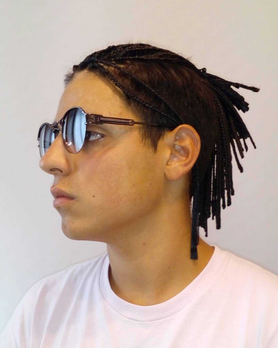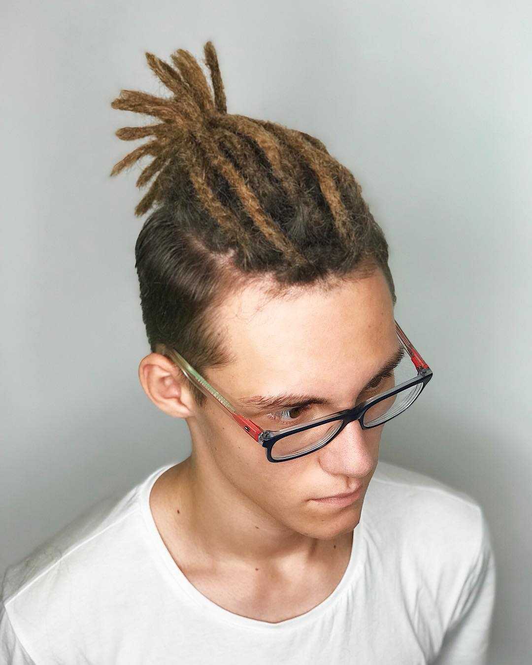 Причесок с мужскими короткими дредами можно сделать немного из-за небольшой длины жгутов. Самые простые варианты: