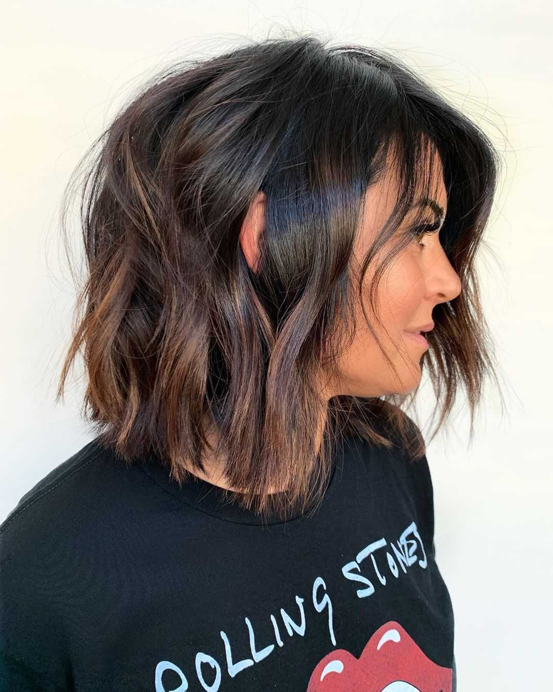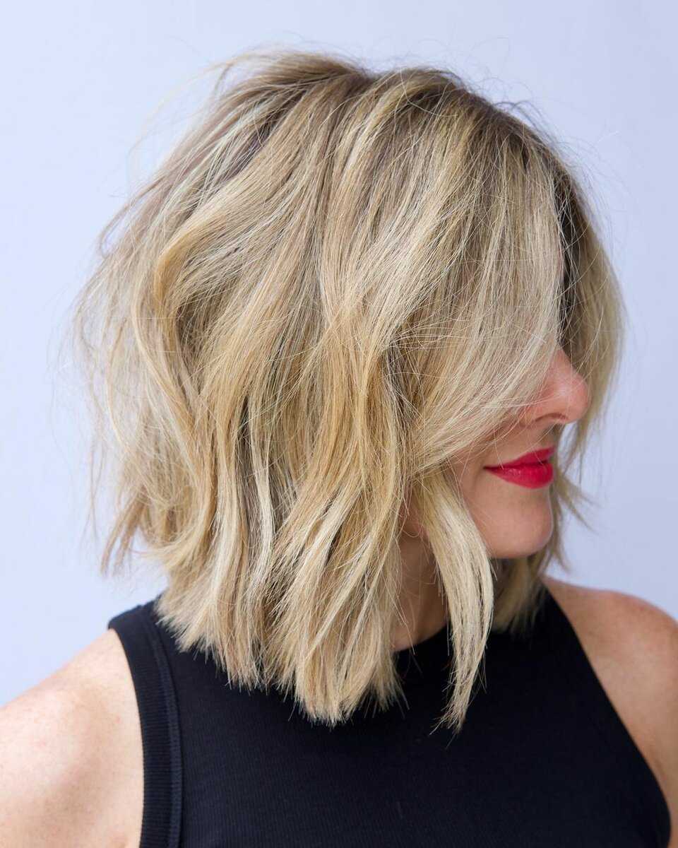 Самая стильная многослойная стрижка на средние волосы без челки -Это определенно лохматый, или лохматый. Ее главная особенность — легкая небрежность. Волнистые и хорошо сидящие. волосы , так и на прямые но последний требует укладывания.