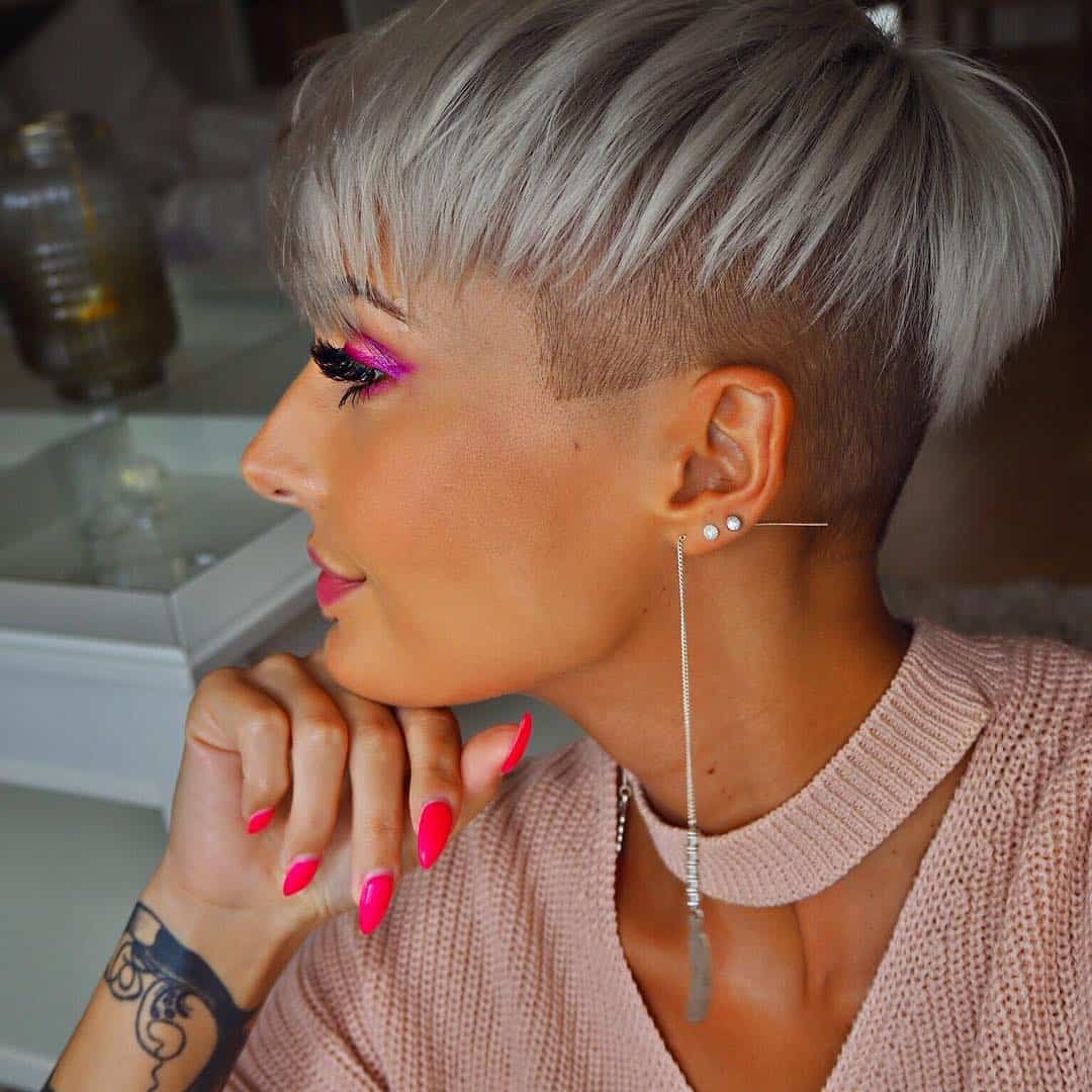 Вариантов для создания прически на короткие волосы достаточное количество. Например, пикси. Пикси с выбритым затылком походит для тех, кому не хватает времени на укладку. Эта прическа представляет собой «хаос» на вашей голове. Придаст образу легкость и неповторимость.