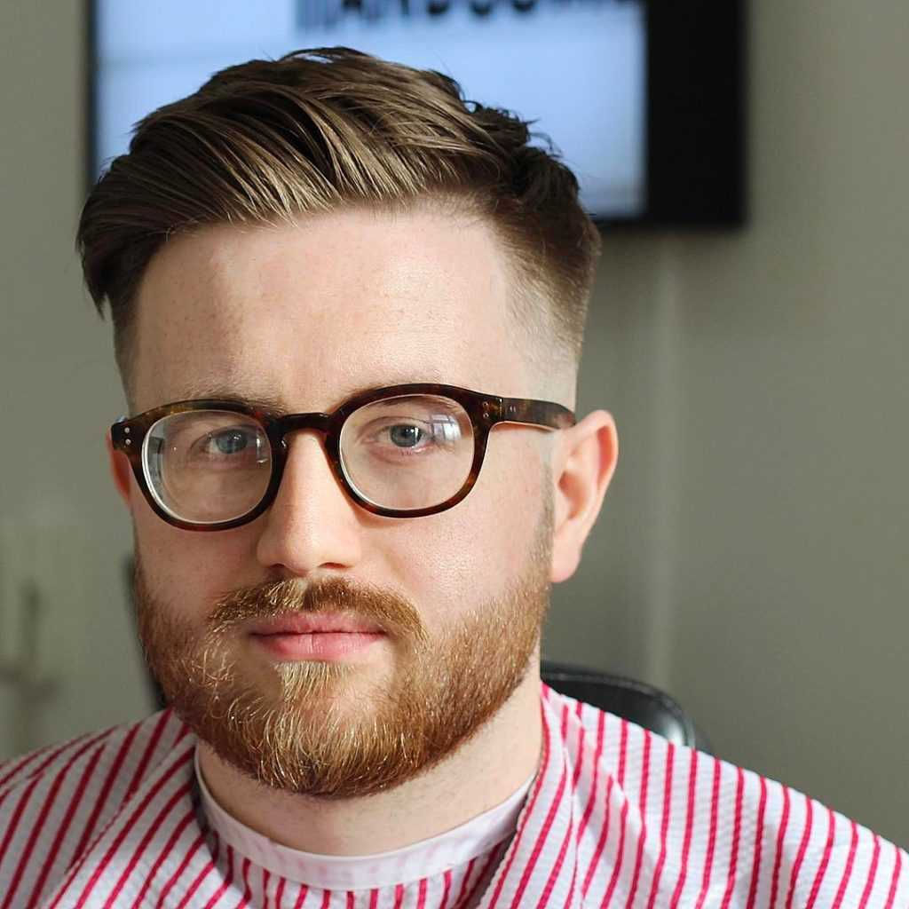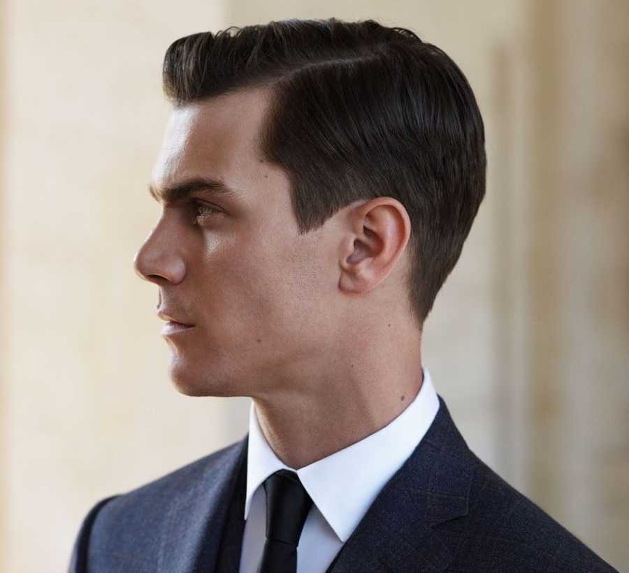 - классический стиль. Аккуратно зачесав волосы на один бок, мужчина может придать своей прическе аккуратный вид традиционной стрижки, которая прекрасно дополнит классический деловой костюм;