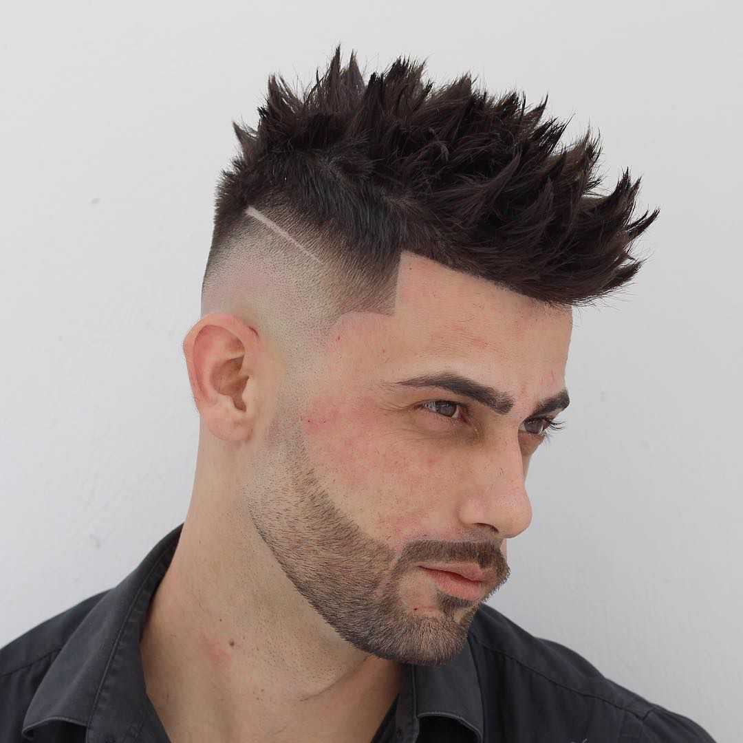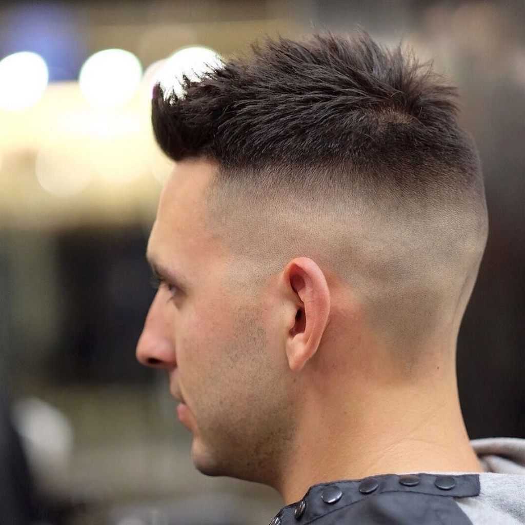 Еще один способ добавить объема и вытянуть круглое лицо. Нужно понимать, что такая мужская стрижка не обойдется без укладки. Только очень густые и жесткие волосы будут стоять весь день самостоятельно. Для актуальной стрижки рекомендуется оставить волосы на макушке более длинными (3-6 см), а вот затылок и виски выбрить очень коротко.