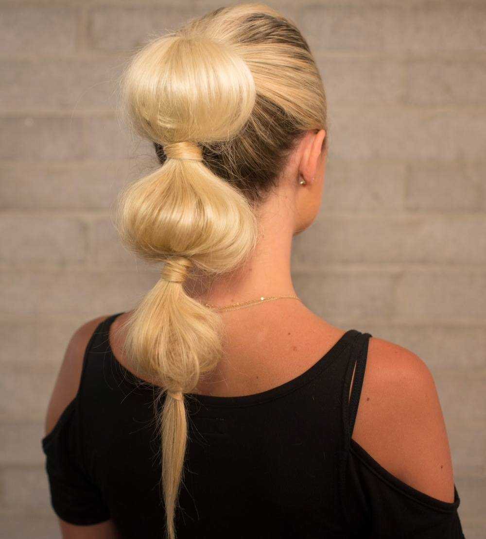 Прическа для торжественных случаев, которая поможет выглядеть визуально выше. Высокие пучки идеально подходят обладательницам волос одинаковой длины, которые не будут выпадать из прически. Тренд последних сезонов – пучки с элементами плетения. Косички, которые аккуратно вплетаются в пучок, великолепно выглядят в деловых образах.