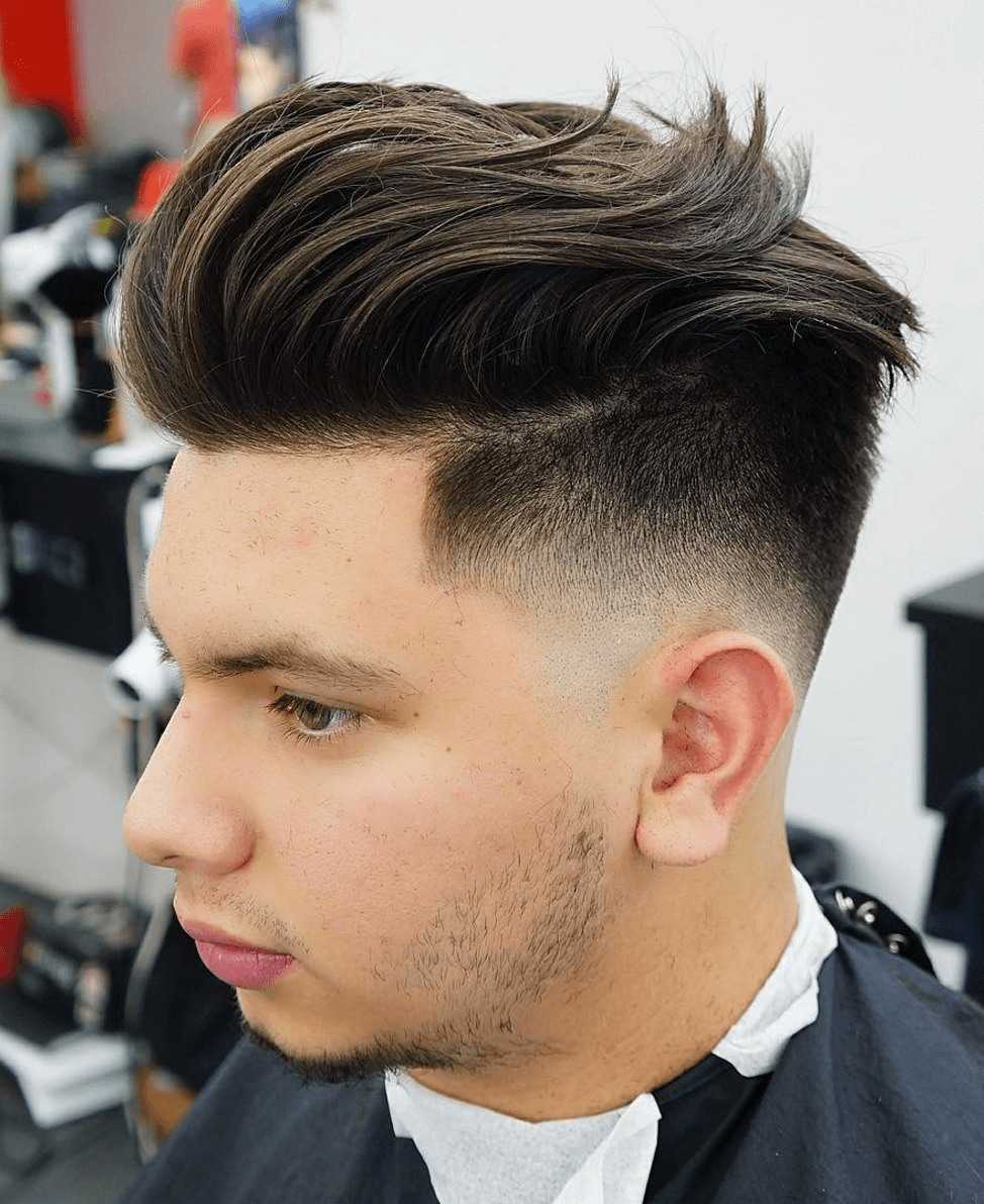 Ровные, чёткие контуры, а длина волос не превышает шести сантиметров. Чёлка короткой длины, направлена набок. Затылок и виски оголены, волосы остаются только на макушке. Причёска отлично скрывает все недостатки и требует минимального ухода. Молодые мужчины могут выбривать фигурные бакенбарды, зрелым лучше предпочесть сдержанную укладку. Стильные классические стрижки: полубокс, бокс, британка.