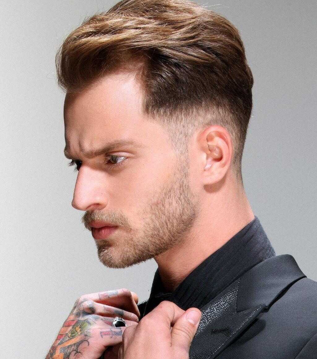 Когда у парня линя роста волос около лба неровная, то стоит обратить внимание на классику. Это придаст облику деловитости и мужественности