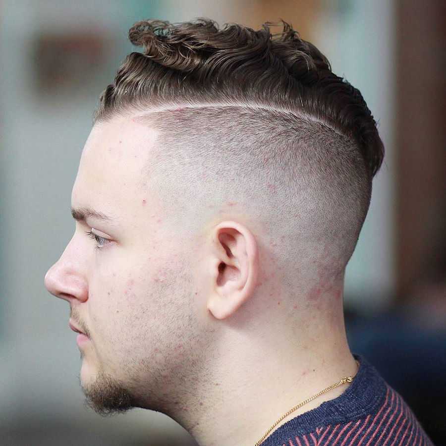 - Fade. Волнистые волосы великолепно смотрятся сверху, где их длина максимальна. С другой стороны, виски и затылок подстрижены очень коротко и не доставляют владельцу никаких хлопот;
