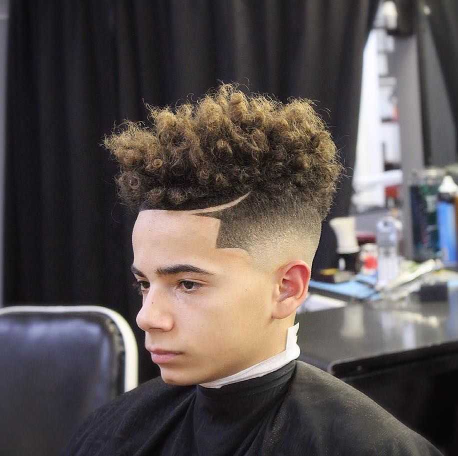 У нас есть высокое лысое выбривание, которое комбинируется с слегка беспорядочными волосами наверху.