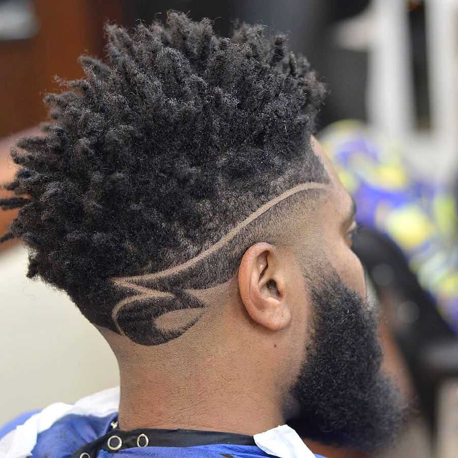 Низкое выбривание комбинируется с толстыми волосами на вершине головы, создавая неповторимый стиль.